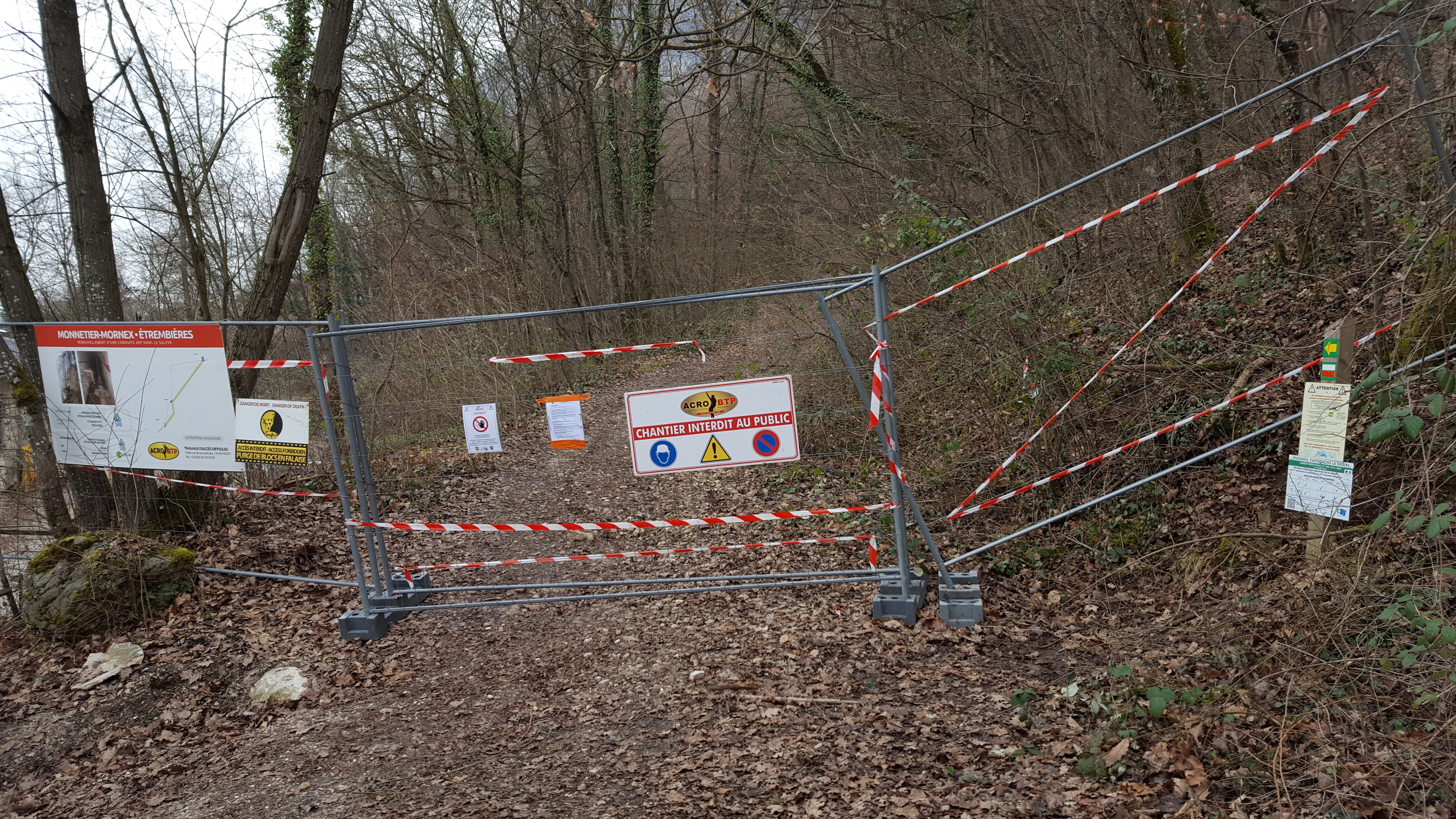 Une histoire et fermeture du sentier du Pas de l'Echelle entre le pont de l'autoroute et le village de Monnetier du 16.1.2017 jusq'au 3.6.2017 et