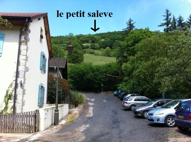 route menant à Archamps sur 50 mètres (à votre gauche un mur de soutènement d'une hauteur de 1,40 mètres) puis en tournant vers la gauche (entre le mur et le pylône électrique) à 90° gravissez le