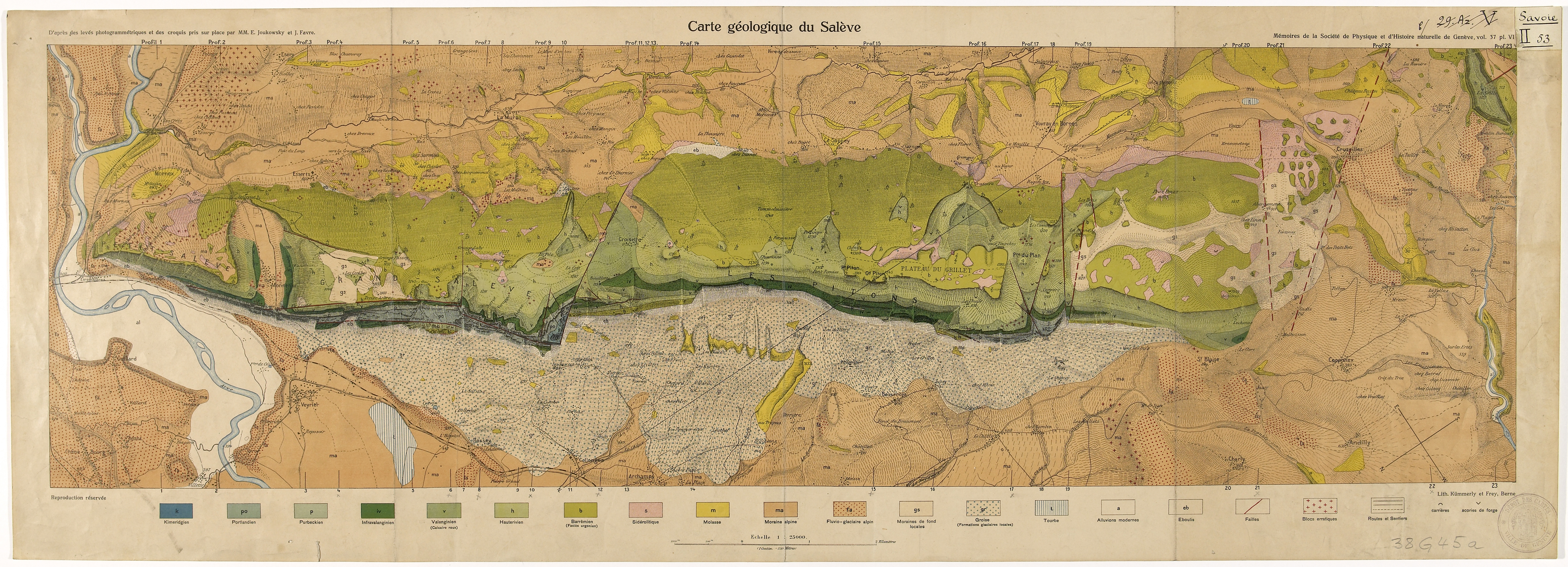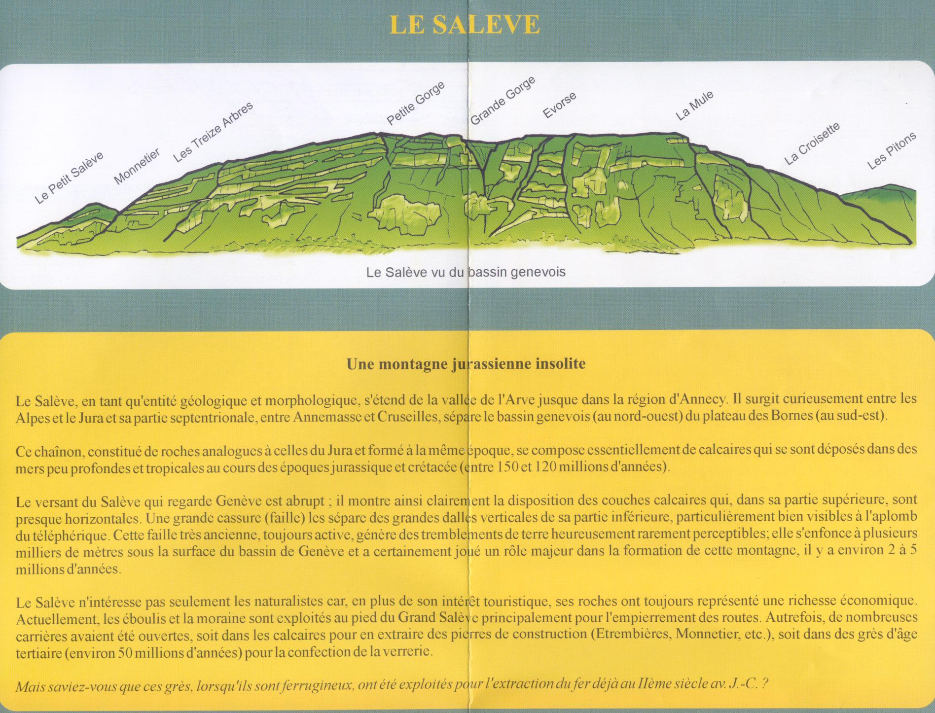 plus proche de Genève (Debut vers 1830). Il y a 140 millions d'années, une mer tropicale peu profonde de type bahamien ou polynésien existait à l'emplacement actuel du Salève.