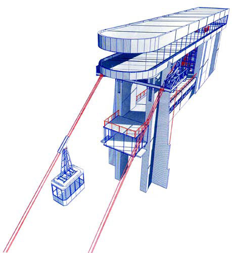 disembarking, the upmarket, glass-walled restaurant Le Panoramique