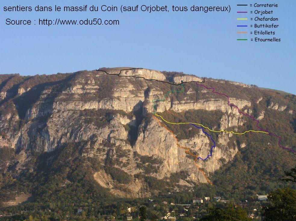 l'érosion, est abrupt. La végétation, ou son absence, souligne la structure des couches calcaires. La montagne est entaillée de plusieurs gorges étroites et profondes, dont la Varappe.