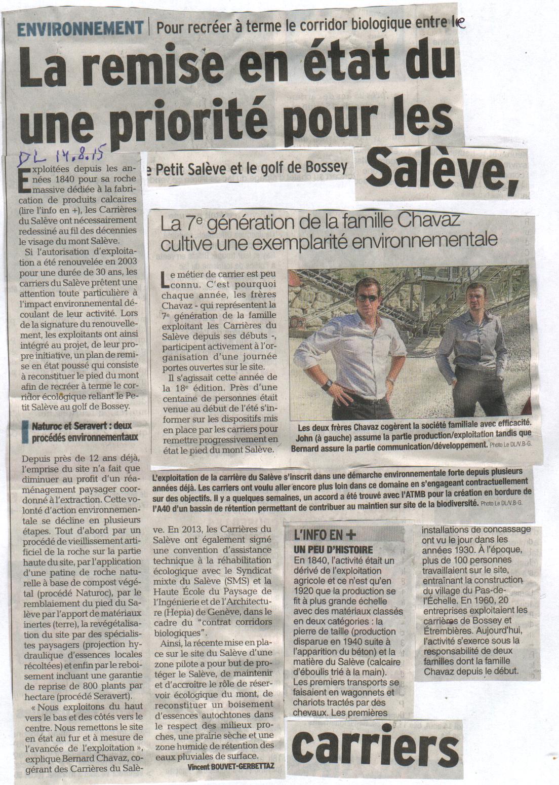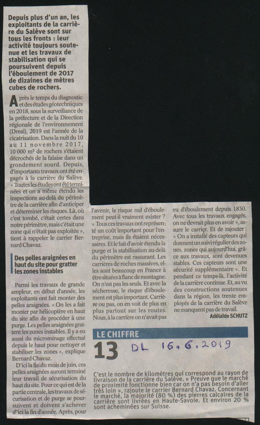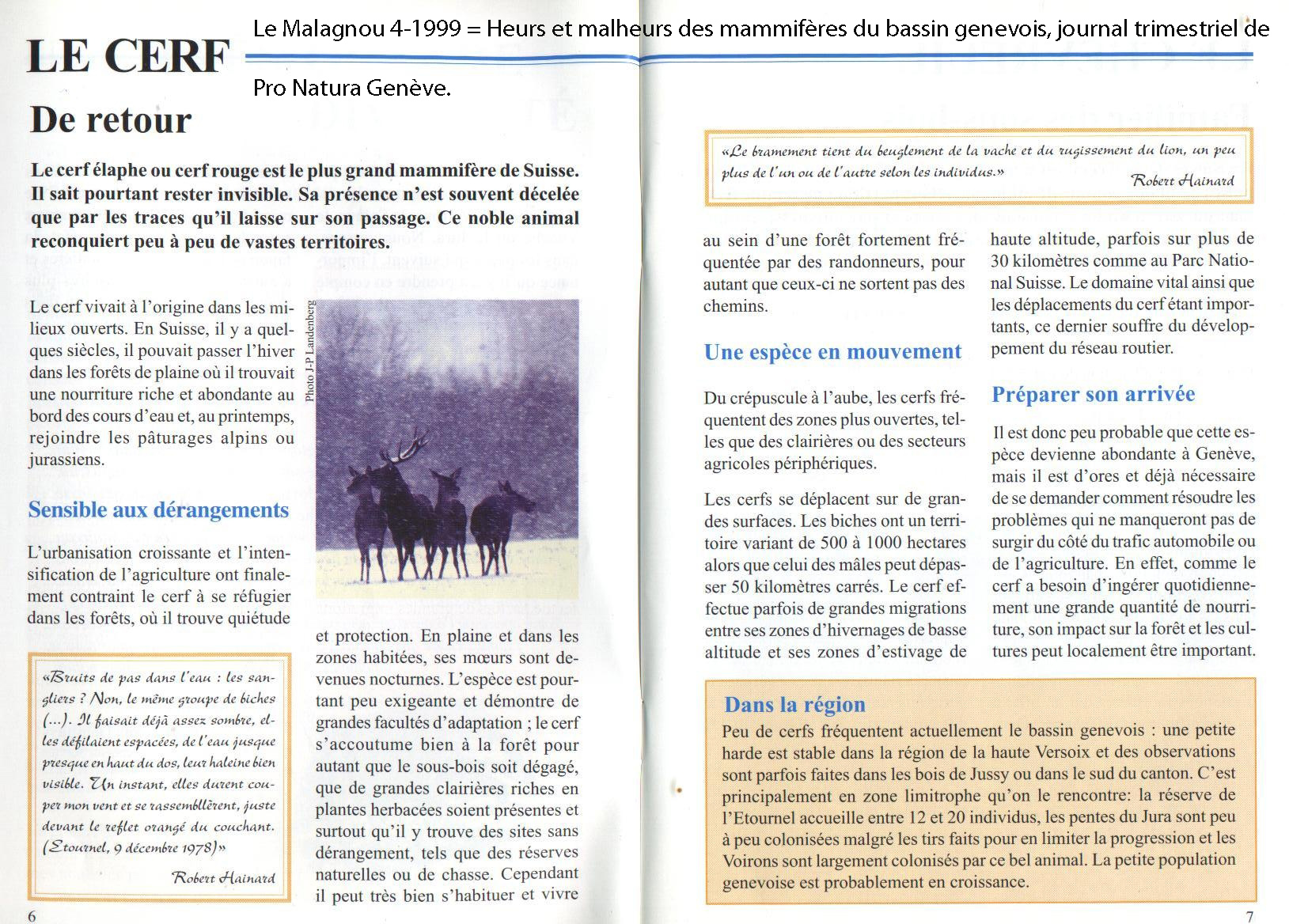 13 Le sentier didactique corridors biologiques du Salève, un rallye nature, 1 article TdG, 1 article DL.