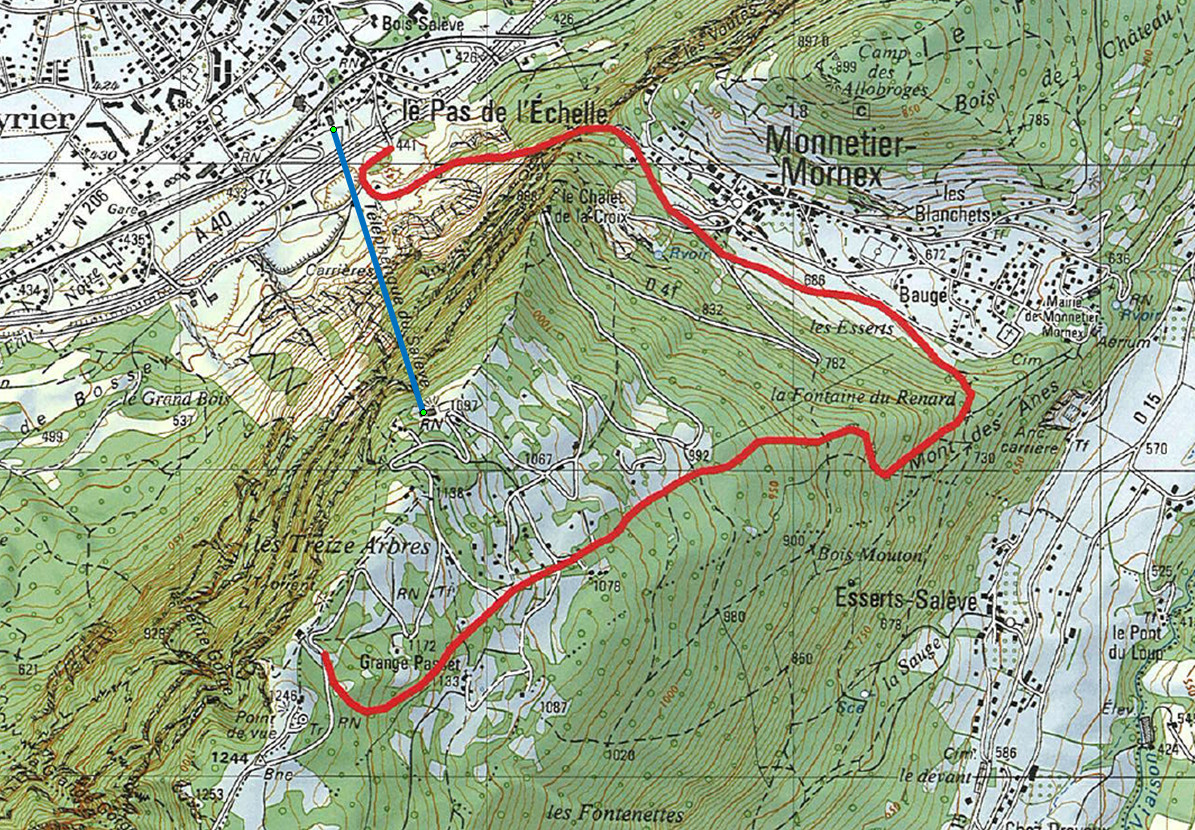 22 Le Salève (Extrait : http://www.cdt-hautesavoie.fr/Gallimard/pages/genevois/carte/carte.htm) .