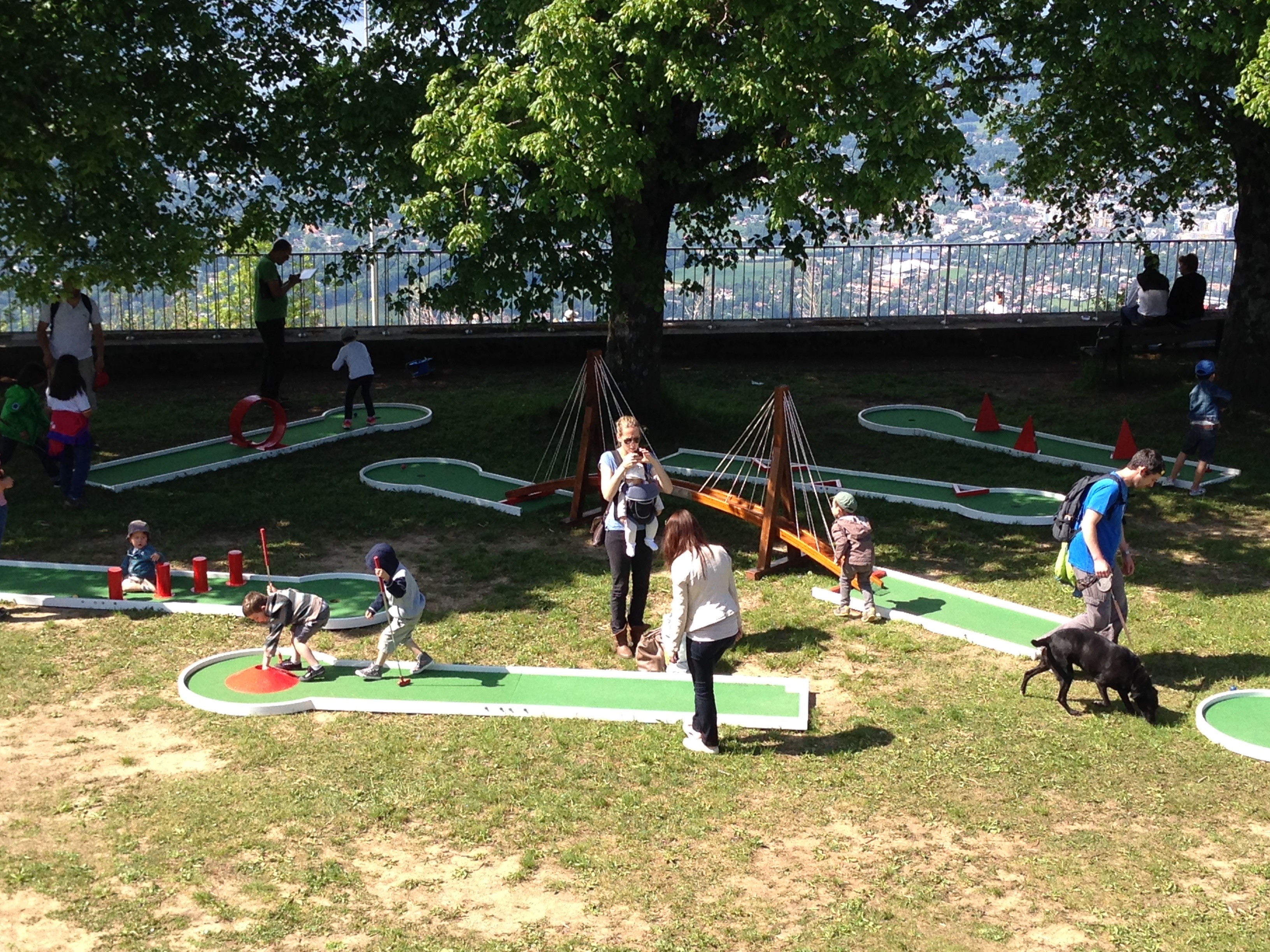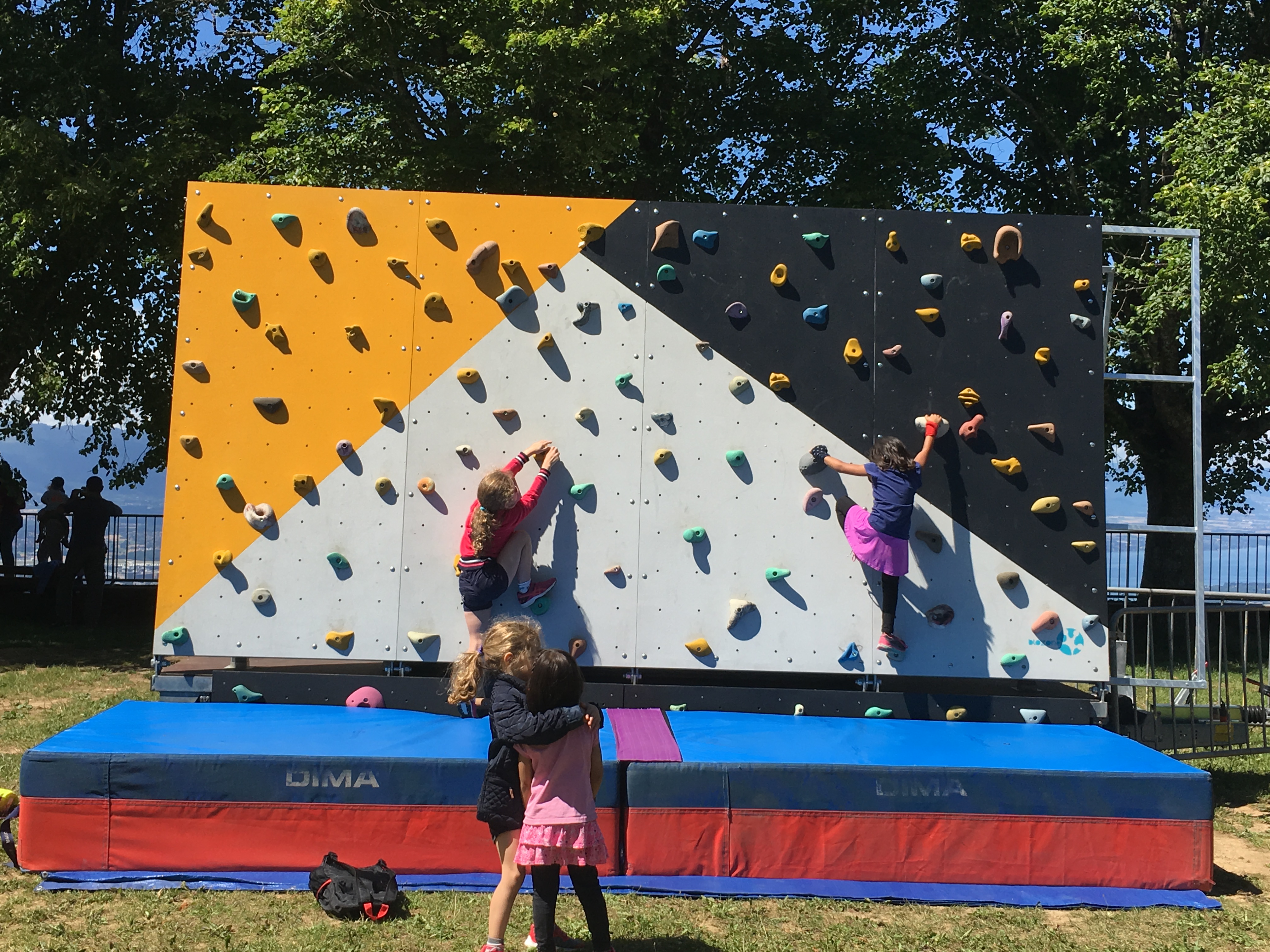 the ground, are rock climbing, all-terrain biking (the téléphérique
