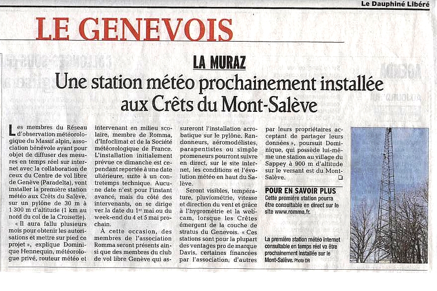 12 L'étoile du Salève, stations météo sur le Salève et « AGAS » et « Salève » dans les moteurs de recherche (y compris la position de www.rando-saleve.net ds 1