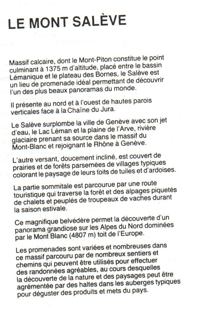 Le Salève (un extrait basé sur le site de la Muraz = http://www.lamuraz.fr - Tourisme & Loisirs - Tourisme - Le Salève )