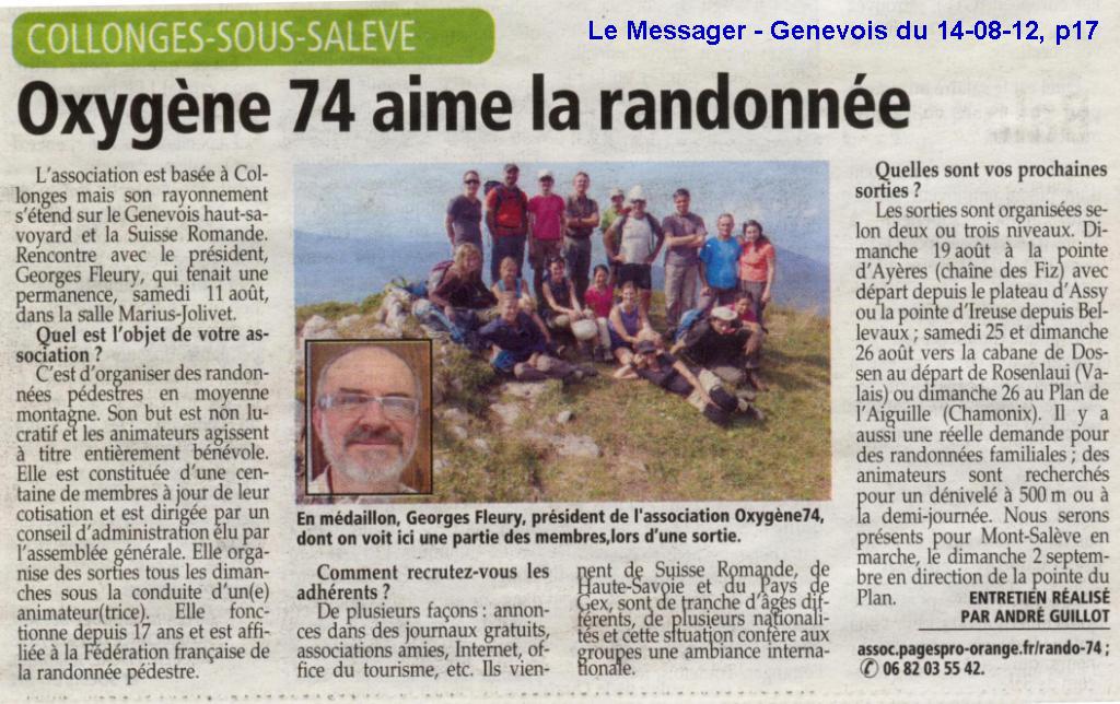 Contact : Georges Fleury F 6'82'03'55'42 (=mobile français) , E-Mail: rando-74@wanadoo.fr .